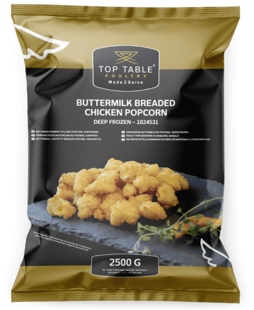 Nu har vi udviklet 2 varianter af Chicken Popcorn til vores Top Table serie.