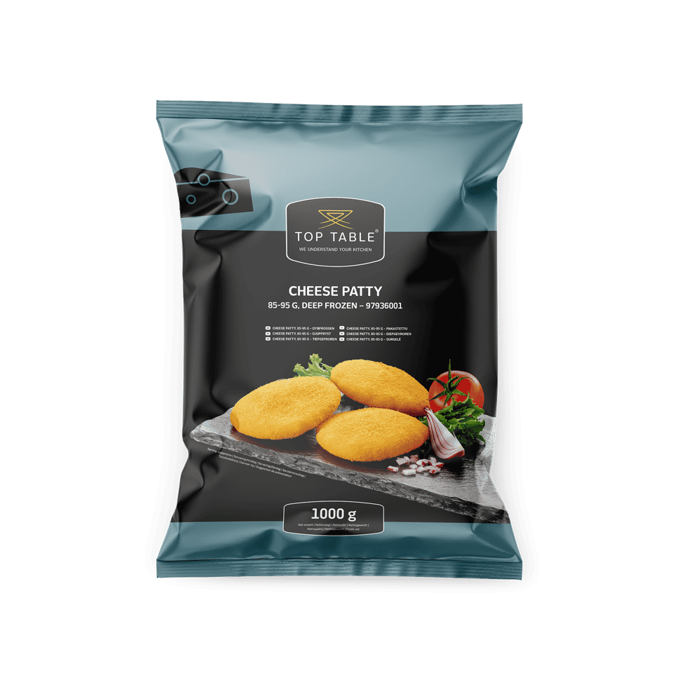 Vores Cheese Patty er en paneret oste-“bøf”, fyldt med cremet, smeltet ost, der giver ekstra smag og fylde til enhver ret. Den sprøde panering skaber den perfekte kontrast til den bløde, smeltende ost indeni.