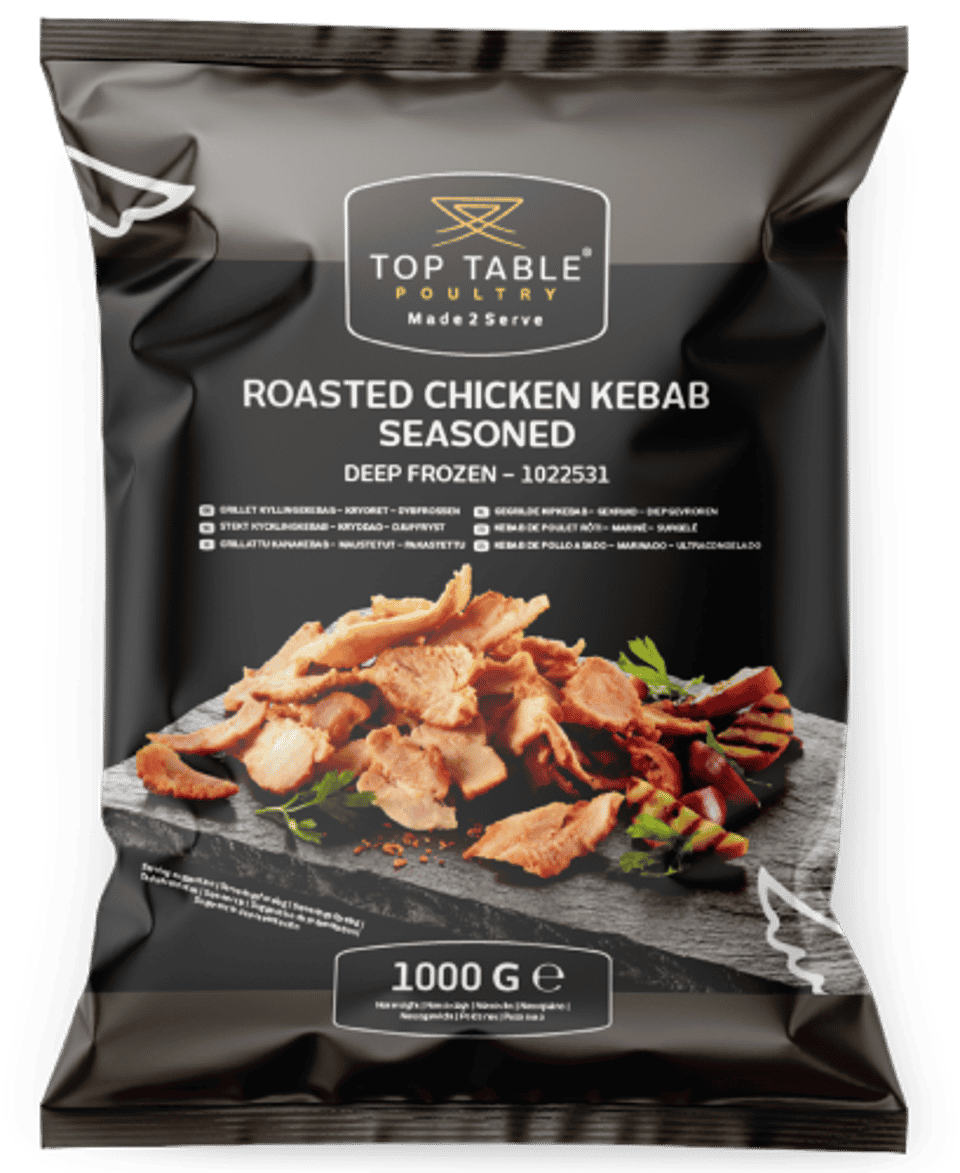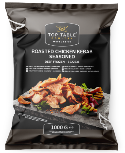 Vores kyllingekebab fra Top Table er lavet på den mest smagfulde udskæring på kyllingen – nemlig lårene. Kødet er marineret med en original krydderiblanding lavet på en helt særlig opskrift. Med hænderne har man sat kødet på spyd, og herefter er kødet blevet grillet og skåret i fine flager. Så du skal med andre ord blot varme og servere den smagfulde kyllingekebab i dine retter!