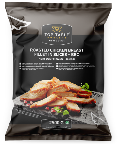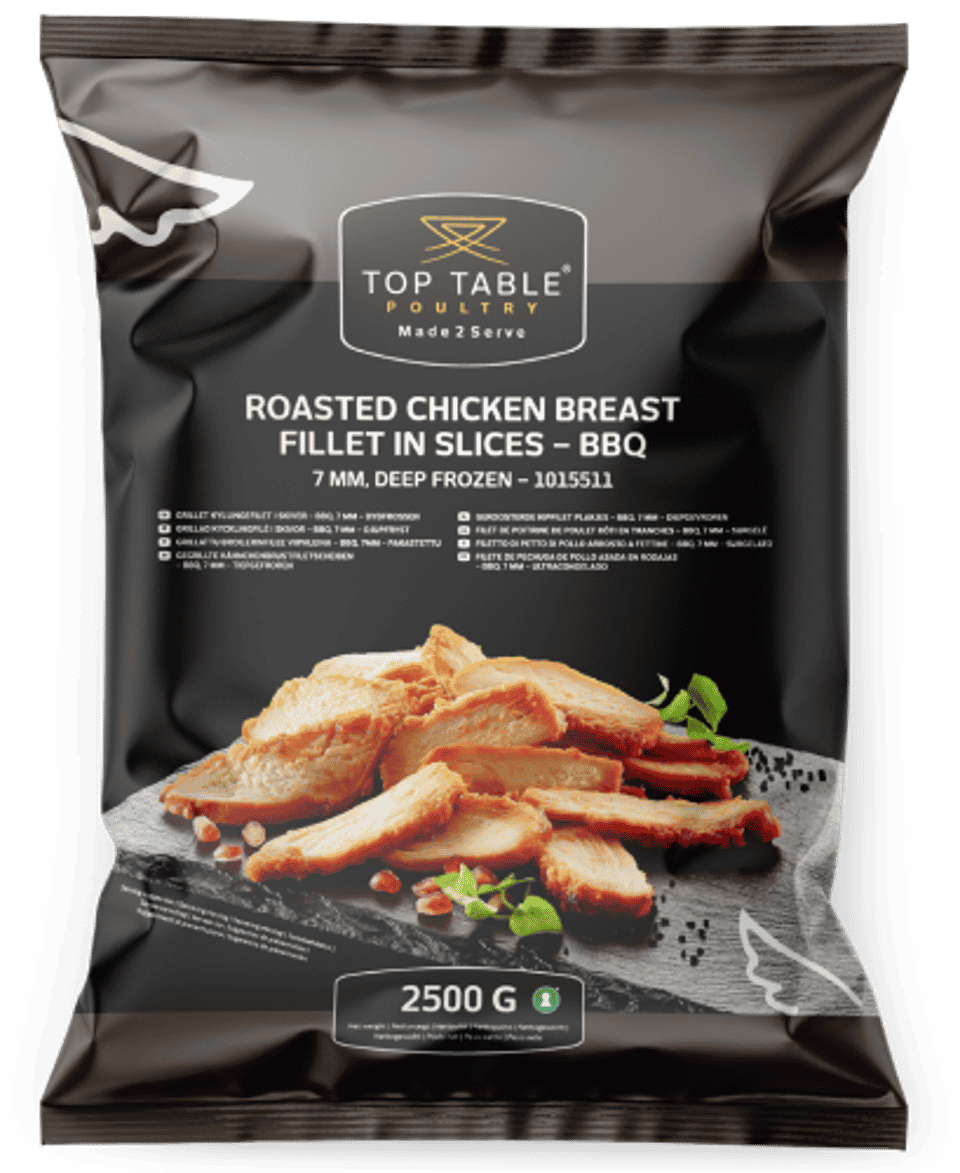Udover vores almindelige grillet kyllingefilet i skiver kan du i vores Top Table-sortiment også få en variant, som er barbecuemarineret.