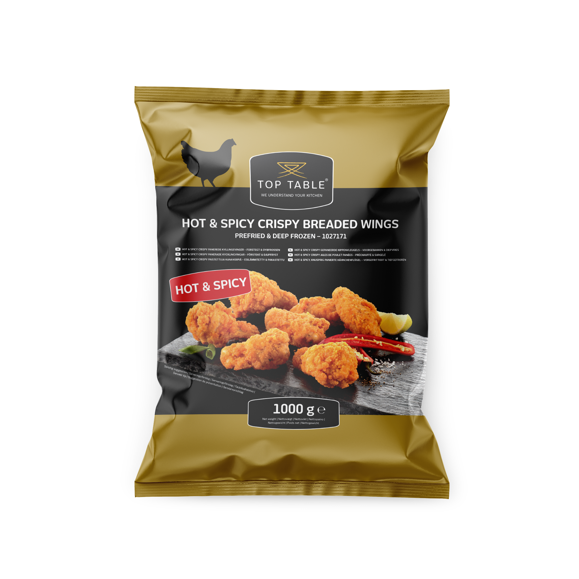 Spice menuen op med vores Hot & Spicy Crispy panerede wings – lækre kyllingevinger med en perfekt sprød panering og et krydret, smagfuldt kick. Indeni gemmer der sig saftigt og mørt kød, som skaber den ultimative kontrast mellem sprødhed og saftighed.