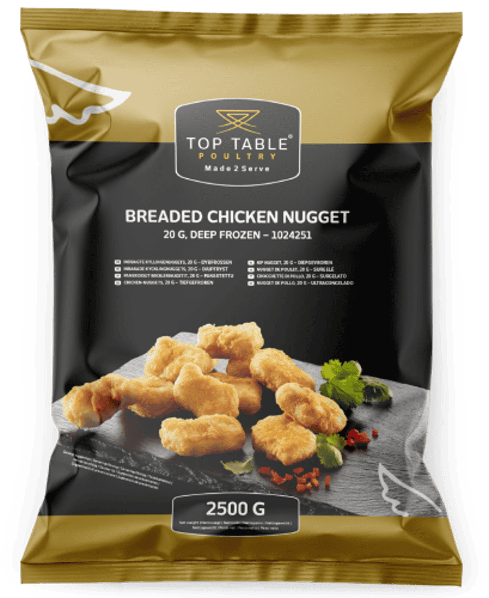 Med vores indbagte kyllingenuggets fra Top Table får du et nuggetprodukt af allerhøjeste kvalitet!