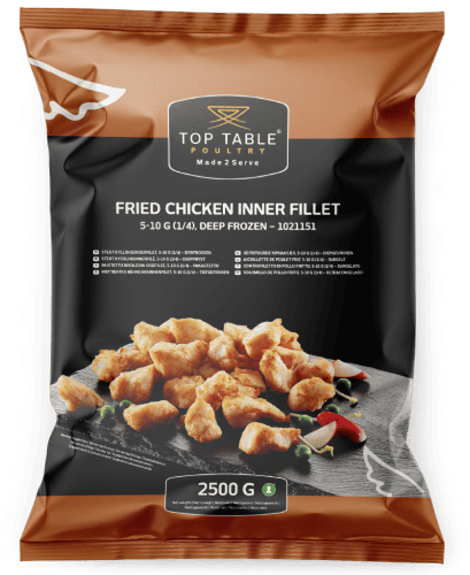 Inderfileten er den mest møre udskæring på fuglen. Og med vores stegt kyllingeinderfilet fra Top Table kan du nemt og hurtigt servere den i dit køkken.